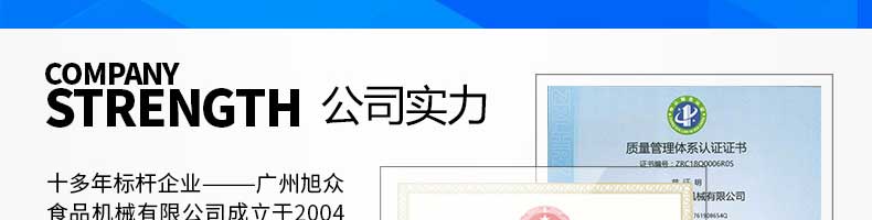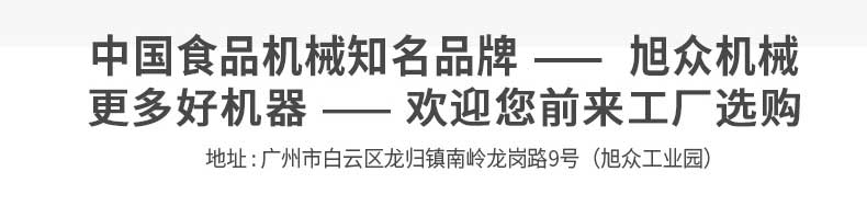 廣州旭眾食品機(jī)械有限公司是一家集科研開(kāi)發(fā),生產(chǎn)設(shè)計(jì),營(yíng)銷服務(wù)為一體的現(xiàn)代化生產(chǎn)企業(yè)?,F(xiàn)代化生產(chǎn)車間,精湛制造技術(shù),所產(chǎn)機(jī)械歷經(jīng)市場(chǎng)重重考驗(yàn),不斷贏得海內(nèi)外客戶的贊譽(yù)。