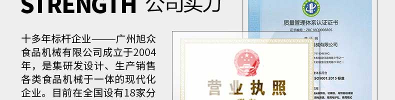 廣州旭眾食品機(jī)械有限公司是一家集科研開發(fā),生產(chǎn)設(shè)計(jì),營銷服務(wù)為一體的現(xiàn)代化生產(chǎn)企業(yè)?,F(xiàn)代化生產(chǎn)車間,精湛制造技術(shù),所產(chǎn)機(jī)械歷經(jīng)市場重重考驗(yàn),不斷贏得海內(nèi)外客戶的贊譽(yù)。
