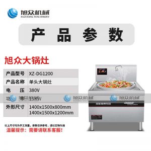 XZ-DG1200-大鍋灶,商用大鍋灶、猛火效率高。適用于酒店/食堂/工地炒菜,均勻翻炒,快速出菜工程可定制。勁爆翻炒快速出菜輕松解決百人用餐,人多也不怕。八檔磁控輕松控溫根據(jù)需求調節(jié),操作簡單,效率更出眾。