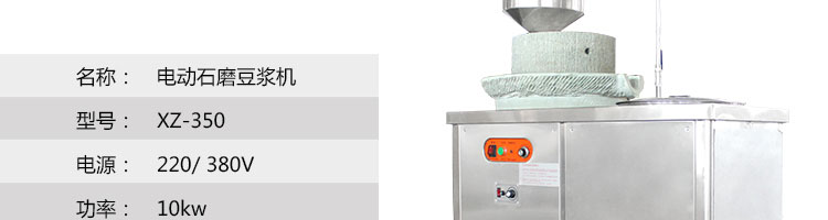 名稱XZ-350型電動(dòng)石磨豆?jié){機(jī) 電源220/380V 功率10kw 產(chǎn)量30kg/h 尺寸1000*550*1100mm 重量 規(guī)格 其他
