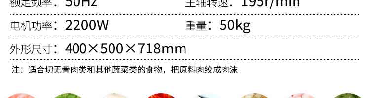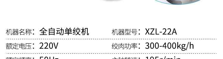 名稱XZ-7絞切機 電源 功率2200W 產(chǎn)量300-400kg/H 尺寸400*500*718MM 重量50kg 規(guī)格 其他