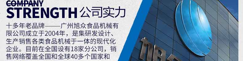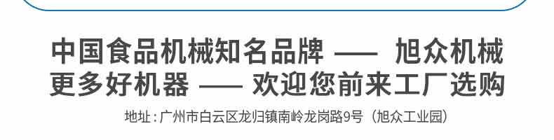 廣州旭眾食品機(jī)械有限公司是一家集科研開(kāi)發(fā),生產(chǎn)設(shè)計(jì),營(yíng)銷(xiāo)服務(wù)為一體的現(xiàn)代化生產(chǎn)企業(yè)?,F(xiàn)代化生產(chǎn)車(chē)間,精湛制造技術(shù),所產(chǎn)機(jī)械歷經(jīng)市場(chǎng)重重考驗(yàn),不斷贏得海內(nèi)外客戶(hù)的贊譽(yù)。