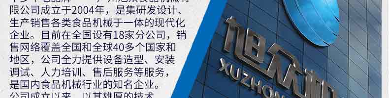 廣州旭眾食品機(jī)械有限公司是一家集科研開發(fā),生產(chǎn)設(shè)計(jì),營(yíng)銷服務(wù)為一體的現(xiàn)代化生產(chǎn)企業(yè)。現(xiàn)代化生產(chǎn)車間,精湛制造技術(shù),所產(chǎn)機(jī)械歷經(jīng)市場(chǎng)重重考驗(yàn),不斷贏得海內(nèi)外客戶的贊譽(yù)。