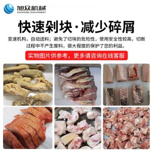 XZW-130禽肉類剁塊機(jī),手工剁肉的煩惱人工切骨頭費(fèi)時費(fèi)力,效率低并且人工成本高,而且也是一個危險程度高的活,尤其是切大骨頭的時候,一不小心就會傷到手手工剁肉費(fèi)時費(fèi)力成本高。旭眾禽肉類剁塊機(jī)幫你解決手工煩惱每小時可剁切600公斤。